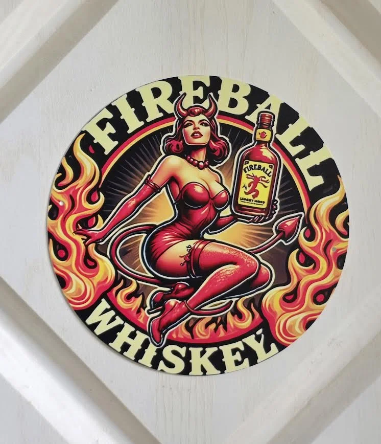 Devil Girl Pin Up 8” Round Metal Wall Decore