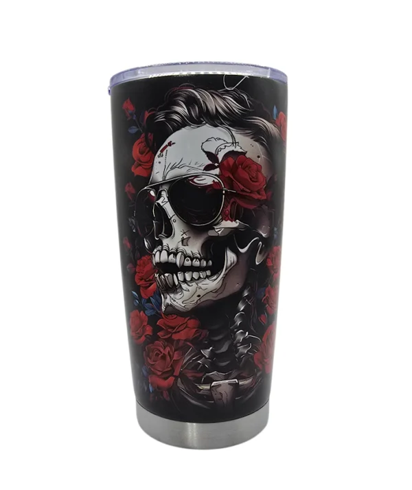Travel Mug. 304 Stainless Steel, Gothic Floral Print.