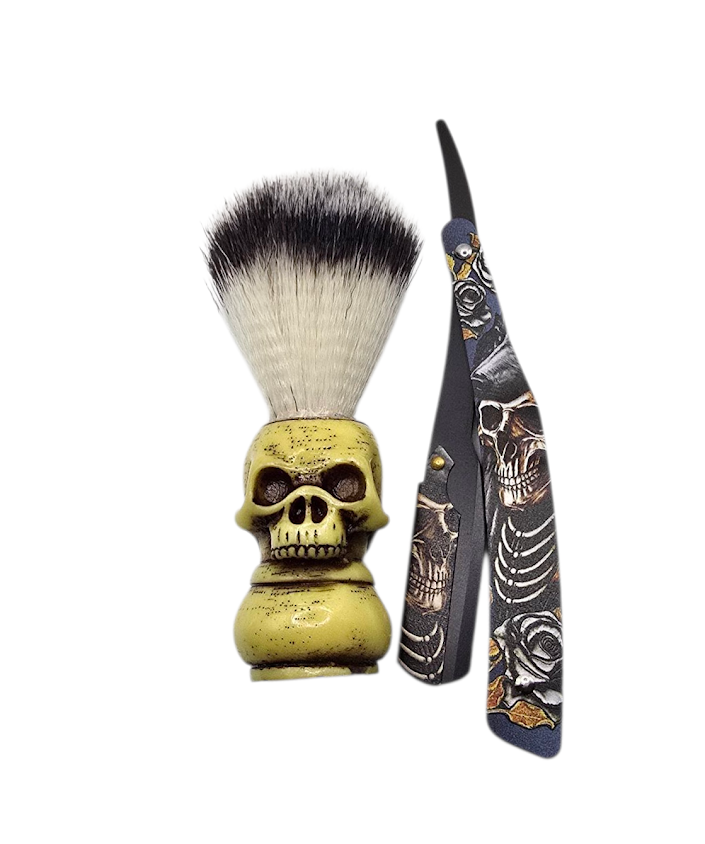 Skull Beard Brush & Straight Edge Razor Trio