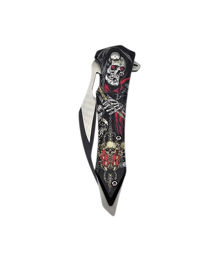 Handle Length: 4.5”s Red Reaper On Black Handle